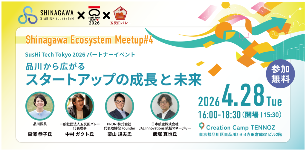 【4/28(火)開催EVENT】Shinagawa Ecosystem Meetup#4 -品川から広がるスタートアップの成長と未来-